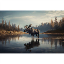 Auf der Suche nach einem ausgefallenen Wandbild als Aluminiumbild? Das Motiv Majestätischer Elch im See im Querformat gefällt dir und du hast nach Wandbildern mit den Wörtern Elch, Wald, See, Wildtier, Herbst, Reflexion, Geweih, Stille, Nebel und Hirsch gesucht? Dann ist dieses Aluminiumbild in den Farben Blau, Braun, Grün und Beige genau das richtige Wandbild und Dekorelement für dich! Setze ein Highlight an deiner Wand! Das Aluminiumbild Majestätischer Elch im See ist in 5 verschiedenen Größen verfügbar, von klein und dezent bis hin zum XXL Aluminiumbild.