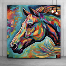 Auf der Suche nach einem ausgefallenen Wandbild als Leinwandbild? Das Motiv Abstraktes buntes Pferdeportrait im Quadrat gefällt dir und du hast nach Wandbildern mit den Wörtern Pferd, Tier, Abstrakt, Farbenfroh, Wirbel, Bunt, Leuchtend, Ausdruckstark, Wind, Modern, Pferdekopf, Portrait und Schönheit gesucht? Dann ist dieses Leinwandbild in der Farbe Bunt genau das richtige Wandbild und Dekorelement für dich! Setze ein Highlight an deiner Wand! Das Leinwandbild Abstraktes buntes Pferdeportrait ist in 4 verschiedenen Größen verfügbar, von klein und dezent bis hin zum XXL Leinwandbild.