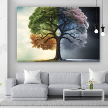 Auf der Suche nach einem ausgefallenen Wandbild als Leinwandbild? Das Motiv Baum 4 Jahreszeiten im Querformat gefällt dir und du hast nach Wandbildern mit den Wörtern Baum, Jahreszeiten, Natur, Sommer, Winter, Herbst, Frühling, Schnee, Nacht, Tag, Sterne, Blätter und Wandel gesucht? Dann ist dieses Leinwandbild in den Farben Grün, Orange, Blau, Grau, Weiß und Rosa genau das richtige Wandbild und Dekorelement für dich! Setze ein Highlight an deiner Wand! Das Leinwandbild Baum 4 Jahreszeiten ist in 5 verschiedenen Größen verfügbar, von klein und dezent bis hin zum XXL Leinwandbild.