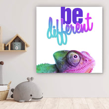 Auf der Suche nach einem ausgefallenen Wandbild als Leinwandbild? Das Motiv Chamäleon Be Different im Quadrat gefällt dir und du hast nach Wandbildern mit den Wörtern Chamäleon, Sprüche, Bunt, Tiere und Echse gesucht? Dann ist dieses Leinwandbild in der Farbe Bunt genau das richtige Wandbild und Dekorelement für dich! Setze ein Highlight an deiner Wand! Das Leinwandbild Chamäleon Be Different ist in 4 verschiedenen Größen verfügbar, von klein und dezent bis hin zum XXL Leinwandbild.