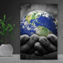 Auf der Suche nach einem ausgefallenen Wandbild als Leinwandbild? Das Motiv Erde in Händen im Hochformat gefällt dir und du hast nach Wandbildern mit den Wörtern Erde, Klima, Weltkugel, Hände, Leben, Nachhaltigkeit, Welt und Astronomie gesucht? Dann ist dieses Leinwandbild in den Farben Blau, Grün und Grau genau das richtige Wandbild und Dekorelement für dich! Setze ein Highlight an deiner Wand! Das Leinwandbild Erde in Händen ist in 5 verschiedenen Größen verfügbar, von klein und dezent bis hin zum XXL Leinwandbild.