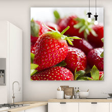 Auf der Suche nach einem ausgefallenen Wandbild als Leinwandbild? Das Motiv Frische Erdbeeren im Quadrat gefällt dir und du hast nach Wandbildern mit den Wörtern Erbeeren, Obst, Gesund, Beeren, Essen, Genuss, Lebensmittel und Frisch gesucht? Dann ist dieses Leinwandbild in den Farben Grün und Rot genau das richtige Wandbild und Dekorelement für dich! Setze ein Highlight an deiner Wand! Das Leinwandbild Frische Erdbeeren ist in 4 verschiedenen Größen verfügbar, von klein und dezent bis hin zum XXL Leinwandbild.
