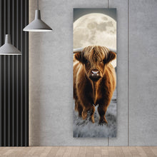 Auf der Suche nach einem ausgefallenen Wandbild als Leinwandbild? Das Motiv Highland Rind im Mondschein im Panorama Hoch gefällt dir und du hast nach Wandbildern mit den Wörtern Tier, Digital Art, Highland Rind, Mondschein, Nacht, Mond, Highlander, Hochlandrind, Rind, Kuh und Schottland gesucht? Dann ist dieses Leinwandbild in den Farben Schwarz, Orange, Blau, Braun, Beige, Grau und Weiß genau das richtige Wandbild und Dekorelement für dich! Setze ein Highlight an deiner Wand! Das Leinwandbild Highland Rind im Mondschein ist in 3 verschiedenen Größen verfügbar, von klein und dezent bis hin zum XXL Leinwandbild.