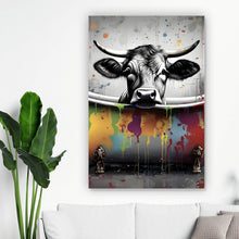 Auf der Suche nach einem ausgefallenen Wandbild als Leinwandbild? Das Motiv Kuh in bunter Badewanne im Hochformat gefällt dir und du hast nach Wandbildern mit den Wörtern Tier, Surreal, Urban, Graffiti, Bunt, Fantasie, Digital Art, Wand, Street Art, Badewanne und Kuh gesucht? Dann ist dieses Leinwandbild in der Farbe Bunt genau das richtige Wandbild und Dekorelement für dich! Setze ein Highlight an deiner Wand! Das Leinwandbild Kuh in bunter Badewanne ist in 4 verschiedenen Größen verfügbar, von klein und dezent bis hin zum XXL Leinwandbild.