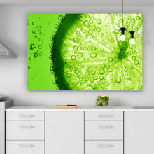 Auf der Suche nach einem ausgefallenen Wandbild als Leinwandbild? Das Motiv Limettenscheibe in Wasserblasen im Querformat gefällt dir und du hast nach Wandbildern mit den Wörtern Früchte, Blasen, Wasser, Zitrusfrüchte, Limetten, Essen, Nahrung, Ernährung und Fitness gesucht? Dann ist dieses Leinwandbild in der Farbe Grün genau das richtige Wandbild und Dekorelement für dich! Setze ein Highlight an deiner Wand! Das Leinwandbild Limettenscheibe in Wasserblasen ist in 5 verschiedenen Größen verfügbar, von klein und dezent bis hin zum XXL Leinwandbild.