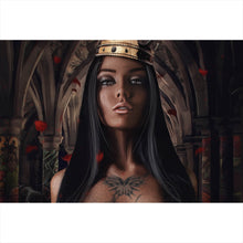 • Lade das Bild in den Galerie-Viewer, Leinwandbild Majestätische Königin in gotischer Umgebung Querformat