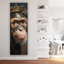 Auf der Suche nach einem ausgefallenen Wandbild als Poster? Das Motiv Adeliger Schimpanse mit Krone im Panorama Hoch gefällt dir und du hast nach Wandbildern mit den Wörtern Schimpanse, Affe, Krone, Majestätisch, Tier, Adel, Kunst und Portrait gesucht? Dann ist dieses Poster in den Farben Schwarz, Blau, Gold und Braun genau das richtige Wandbild und Dekorelement für dich! Setze ein Highlight an deiner Wand! Das Poster Adeliger Schimpanse mit Krone ist in 3 verschiedenen Größen verfügbar, von klein und dezent bis hin zum XXL Poster.