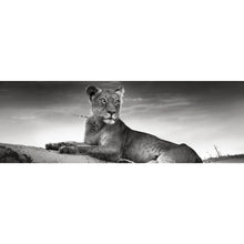 • Lade das Bild in den Galerie-Viewer, Poster Anmutige Löwin Schwarz Weiß Panorama