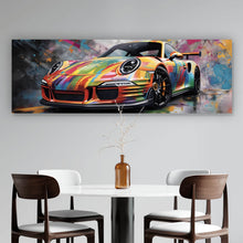 Auf der Suche nach einem ausgefallenen Wandbild als Poster? Das Motiv Auffälliger bunter Rennwagen Abstrakt im Panorama gefällt dir und du hast nach Wandbildern mit den Wörtern Rennwagen, Sportwage, Auto, Kunst, Abstrakt, Farbspritzer, Luxus, Design, Dynamisch, Kreativ und GT3 gesucht? Dann ist dieses Poster in der Farbe Bunt genau das richtige Wandbild und Dekorelement für dich! Setze ein Highlight an deiner Wand! Das Poster Auffälliger bunter Rennwagen Abstrakt ist in 3 verschiedenen Größen verfügbar, von klein und dezent bis hin zum XXL Poster.