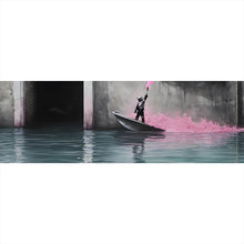 Auf der Suche nach einem ausgefallenen Wandbild als Poster? Das Motiv Banksy - Junge mit Leuchtfeuer im Panorama gefällt dir und du hast nach Wandbildern mit den Wörtern Banksy, Kunst, Grafitti, Street Art, Modern Art, Boot, Rettungsring, Leuchtfeuer, Schiff, Junge, Rettung, Überflutung, Hilfe und Wasser gesucht? Dann ist dieses Poster in den Farben Schwarz, Pink, Türkis, Beige und Grau genau das richtige Wandbild und Dekorelement für dich! Setze ein Highlight an deiner Wand! Das Poster Banksy - Junge mit Leuchtfeuer ist in 3 verschiedenen Größen verfügbar, von klein und dezent bis hin zum XXL Poster.