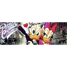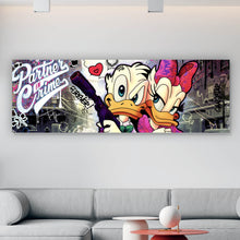 Auf der Suche nach einem ausgefallenen Wandbild als Poster? Das Motiv Donald und Daisy in Crime Pop Art im Panorama gefällt dir und du hast nach Wandbildern mit den Wörtern Pop Art, Donald, Daisy, Partner, Kriminell, Crime, Sprüche, Zitate, Liebe, Grunge, Modern Art, Gangster, Graffiti, Straße und Waffe gesucht? Dann ist dieses Poster in der Farbe Bunt genau das richtige Wandbild und Dekorelement für dich! Setze ein Highlight an deiner Wand! Das Poster Donald und Daisy in Crime Pop Art ist in 3 verschiedenen Größen verfügbar, von klein und dezent bis hin zum XXL Poster.