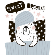 Auf der Suche nach einem ausgefallenen Wandbild als Poster? Das Motiv Eisbär Sweet Dreams im Quadrat gefällt dir und du hast nach Wandbildern mit den Wörtern Eisbär, Kinderzimmer, Schlafen, Bett, Sweet Dreams, Kinder und Tiere gesucht? Dann ist dieses Poster in den Farben Blau, Weiß und Schwarz genau das richtige Wandbild und Dekorelement für dich! Setze ein Highlight an deiner Wand! Das Poster Eisbär Sweet Dreams ist in 2 verschiedenen Größen verfügbar, von klein und dezent bis hin zum XXL Poster.
