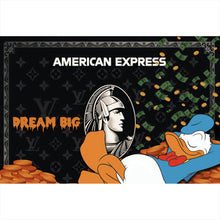 Auf der Suche nach einem ausgefallenen Wandbild als Poster? Das Motiv Express Card Donald Pop Art im Querformat gefällt dir und du hast nach Wandbildern mit den Wörtern Donald, Ente, PopArt, Kreditkarte, Motivation, Comic, Geld und Money gesucht? Dann ist dieses Poster in den Farben Schwarz, Blau und Orange genau das richtige Wandbild und Dekorelement für dich! Setze ein Highlight an deiner Wand! Das Poster Express Card Donald Pop Art ist in 4 verschiedenen Größen verfügbar, von klein und dezent bis hin zum XXL Poster.