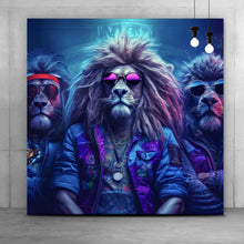 Auf der Suche nach einem ausgefallenen Wandbild als Poster? Das Motiv Löwen Trio Cool Digital Art im Quadrat gefällt dir und du hast nach Wandbildern mit den Wörtern Löwen, Raubkatze, Lederjacke, Gang, Hip, Cool, Brille, Nacht, Bande und Fantasie gesucht? Dann ist dieses Poster in den Farben Blau, Lila, Pink und Türkis genau das richtige Wandbild und Dekorelement für dich! Setze ein Highlight an deiner Wand! Das Poster Löwen Trio Cool Digital Art ist in 2 verschiedenen Größen verfügbar, von klein und dezent bis hin zum XXL Poster.