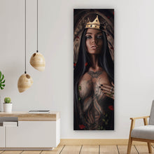 Auf der Suche nach einem ausgefallenen Wandbild als Poster? Das Motiv Majestätische Königin in gotischer Umgebung im Panorama Hoch gefällt dir und du hast nach Wandbildern mit den Wörtern Frau, Fantasie, Königin, Goitik, Mysterium, Krone, Nackt, Sexy, Tattoo und Erotik gesucht? Dann ist dieses Poster in den Farben Schwarz, Beige, Grau, Braun und Rot genau das richtige Wandbild und Dekorelement für dich! Setze ein Highlight an deiner Wand! Das Poster Majestätische Königin in gotischer Umgebung ist in 3 verschiedenen Größen verfügbar, von klein und dezent bis hin zum XXL Poster.