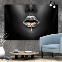 Auf der Suche nach einem ausgefallenen Wandbild als Poster? Das Motiv Silberfarbene Lippen im Querformat gefällt dir und du hast nach Wandbildern mit den Wörtern Schönheit, Lippen, Tropfen, Kosmetik, Gesicht, Frau, Schminken, Sexy, Erotik, Lipgloss, Make Up und Lips gesucht? Dann ist dieses Poster in den Farben Schwarz, Gold und Silber genau das richtige Wandbild und Dekorelement für dich! Setze ein Highlight an deiner Wand! Das Poster Silberfarbene Lippen ist in 4 verschiedenen Größen verfügbar, von klein und dezent bis hin zum XXL Poster.