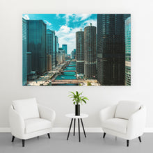 Auf der Suche nach einem ausgefallenen Wandbild als Poster? Das Motiv Stadtteil mit Wolkenkratzer im Querformat gefällt dir und du hast nach Wandbildern mit den Wörtern Stadt, Architektur, Wolkenkratzer, Gebäude, Häuser und Kanal gesucht? Dann ist dieses Poster in der Farbe Blau genau das richtige Wandbild und Dekorelement für dich! Setze ein Highlight an deiner Wand! Das Poster Stadtteil mit Wolkenkratzer ist in 4 verschiedenen Größen verfügbar, von klein und dezent bis hin zum XXL Poster.