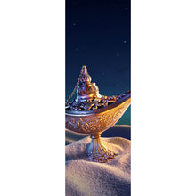 Auf der Suche nach einem ausgefallenen Wandbild als Poster? Das Motiv Wunderlampe in der Wüste bei Nacht im Panorama Hoch gefällt dir und du hast nach Wandbildern mit den Wörtern Wunderlampe, Wüste, Nacht und Wünsche gesucht? Dann ist dieses Poster in den Farben Blau und Gold genau das richtige Wandbild und Dekorelement für dich! Setze ein Highlight an deiner Wand! Das Poster Wunderlampe in der Wüste bei Nacht ist in 3 verschiedenen Größen verfügbar, von klein und dezent bis hin zum XXL Poster.