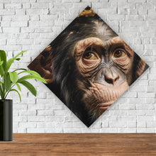 Auf der Suche nach einem ausgefallenen Wandbild als Spannrahmenbild? Das Motiv Adeliger Schimpanse mit Krone als Raute gefällt dir und du hast nach Wandbildern mit den Wörtern Schimpanse, Affe, Krone, Majestätisch, Tier, Adel, Kunst und Portrait gesucht? Dann ist dieses Spannrahmenbild in den Farben Schwarz, Blau, Gold und Braun genau das richtige Wandbild und Dekorelement für dich! Setze ein Highlight an deiner Wand! Das Spannrahmenbild Adeliger Schimpanse mit Krone ist in 4 verschiedenen Größen verfügbar, von klein und dezent bis hin zum XXL Spannrahmenbild.