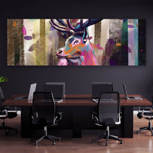 Auf der Suche nach einem ausgefallenen Wandbild als Spannrahmenbild? Das Motiv Bunter Hirsch Abstrakt Art im Panorama gefällt dir und du hast nach Wandbildern mit den Wörtern Hirsch, Wald, Gemälde, Kunst, Bunt, Tiere und Abstrakt gesucht? Dann ist dieses Spannrahmenbild in der Farbe Bunt genau das richtige Wandbild und Dekorelement für dich! Setze ein Highlight an deiner Wand! Das Spannrahmenbild Bunter Hirsch Abstrakt Art ist in 3 verschiedenen Größen verfügbar, von klein und dezent bis hin zum XXL Spannrahmenbild.