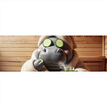 Auf der Suche nach einem ausgefallenen Wandbild als Spannrahmenbild? Das Motiv Nilpferd entspannt in der Sauna Digital Art im Panorama gefällt dir und du hast nach Wandbildern mit den Wörtern Nilpferd, Sauna, Entspannung, Wellness, Bademantel, Teekanne, Holzbank, Ruhe, Dampf, Handtuch, Schweiß, Gurke und Relax gesucht? Dann ist dieses Spannrahmenbild in den Farben Braun, Grün, Beige und Grau genau das richtige Wandbild und Dekorelement für dich! Setze ein Highlight an deiner Wand! Das Spannrahmenbild Nilpferd entspannt in der Sauna Digital Art ist in 3 verschiedenen Größen verfügbar, von klein und dezent bis hin zum XXL Spannrahmenbild.