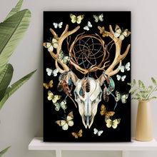 Auf der Suche nach einem ausgefallenen Wandbild als Spannrahmenbild? Das Motiv Rehschädel mit Schmetterlingen im Hochformat gefällt dir und du hast nach Wandbildern mit den Wörtern Schädel, Schmetterlinge, Traumfänger, Kunst, Modern Art, Federn, Knochen, Geweih und Boho gesucht? Dann ist dieses Spannrahmenbild in den Farben Schwarz und Braun genau das richtige Wandbild und Dekorelement für dich! Setze ein Highlight an deiner Wand! Das Spannrahmenbild Rehschädel mit Schmetterlingen ist in 5 verschiedenen Größen verfügbar, von klein und dezent bis hin zum XXL Spannrahmenbild.