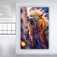 Auf der Suche nach einem ausgefallenen Wandbild als Spannrahmenbild? Das Motiv Rockiger Leopard der singt im Hochformat gefällt dir und du hast nach Wandbildern mit den Wörtern Leopard, Rockstar, Bühne, Mikrofon, Gesang, Kostüm, Musik, Wild, Kreativ, Leidenschaft, Laut, Kunst, Energie, Unterhaltung und Konzert gesucht? Dann ist dieses Spannrahmenbild in der Farbe Bunt genau das richtige Wandbild und Dekorelement für dich! Setze ein Highlight an deiner Wand! Das Spannrahmenbild Rockiger Leopard der singt ist in 5 verschiedenen Größen verfügbar, von klein und dezent bis hin zum XXL Spannrahmenbild.