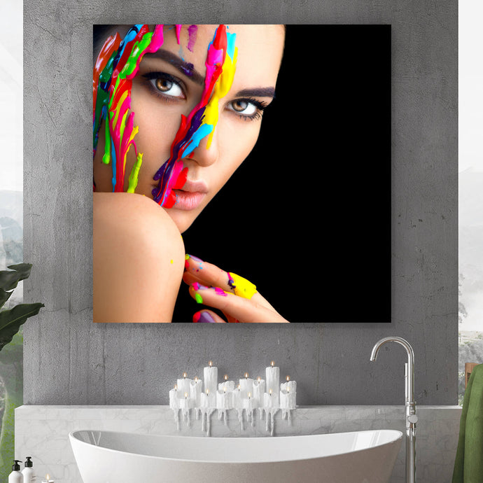 Spannrahmenbild Frauen Portrait Bodypaint Quadrat