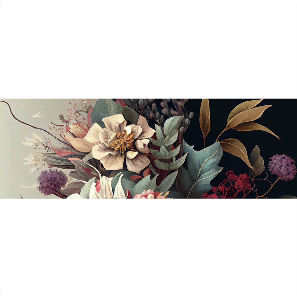 Das Spannrahmenbild Blumenkomposition in sanften Farbtönen im Panorama gehört mit großem Abstand zu den edelsten Wandbildvarianten. Textilspannrahmen, oft auch Frameless, Aluframes oder Textilspannrahmen genannt, sind die perfekte Kombination aus einem 25 mm starken eloxiertem Aluminiumrahmen und einem hochwertigen Sublimationsdruck auf einem Textil Banner. Der leichte Alurahmen, das Textilbanner mit Gummilippe und eine Aufhängung gibt es bei uns im praktischen Komplettset. Spannbilder sind eine großartige Alternative zu allen anderen Wandbild Arten und vermitteln eine luxuriöse und anmutende Ausstrahlung. Auch ein kurzfristiger Motivwechsel ist mit einem Spannrahmenbild kein Problem mehr, da die Drucke einfach austauschbar sind. Da sich der Rahmen ja dann bereits im Besitz befindet, kann einfach ein passender Ersatzdruck kostengünstig nachbestellt werden, selbstverständlich auch mit einem anderen Motiv. Im Handumdrehen erstrahlt die Wand in neuem Glanz. Der Textildruck ist B1 zertifiziert und somit auch ideal für Gewerbe, Büro oder Praxis. Spannrahmenbilder, die auch nach Jahren noch wie neu aussehen und strahlen.