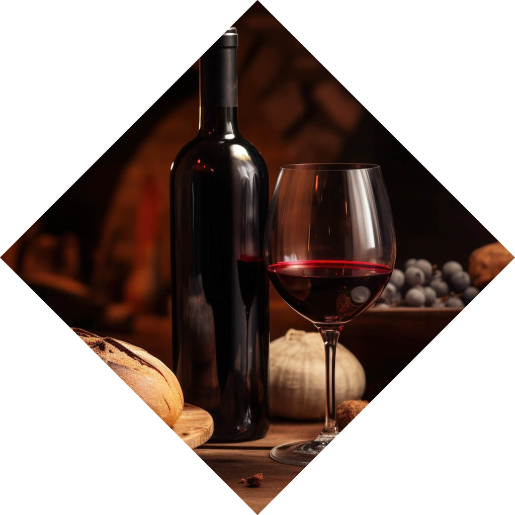 Dieses beeindruckende Wandbild zeigt eine elegante Szene mit einem rustikalen Brotteller, einer Flasche edlen Weins und einem Glas, das für eine atmosphärische Stimmung sorgt. Die Kerzen im Hintergrund werfen ein sanftes Licht, das die gesamte Szenerie in eine warme, einladende Atmosphäre taucht und das Gefühl von Gemütlichkeit und Entspannung vermittelt. Die Anordnung der Elemente auf diesem Bild strahlt eine gewisse Eleganz und Raffinesse aus, die perfekt in ein stilvolles Esszimmer oder eine gemütliche Küche passt. Die Darstellung von Brot und Wein in einem harmonischen Kontext weckt Assoziationen von Genuss und kulinarischem Erlebnis. Der Vintage-Stil des Bildes unterstreicht die zeitlose Schönheit dieser alltäglichen, aber doch besonderen Momente. Die Tiefenwirkung des Bildes wird durch die geschickte Platzierung der Objekte und die kontrastreiche Beleuchtung verstärkt, was dem Betrachter das Gefühl gibt, Teil dieser einladenden Szene zu sein. Die Materialanmutung des Brotes und der Flasche ist so detailreich, dass man fast meint, den Duft von frisch gebackenem Brot und feinem Wein wahrnehmen zu können. Dieses Bild ist eine perfekte Ergänzung für jeden Raum, der eine warme und einladende Atmosphäre schaffen möchte.
