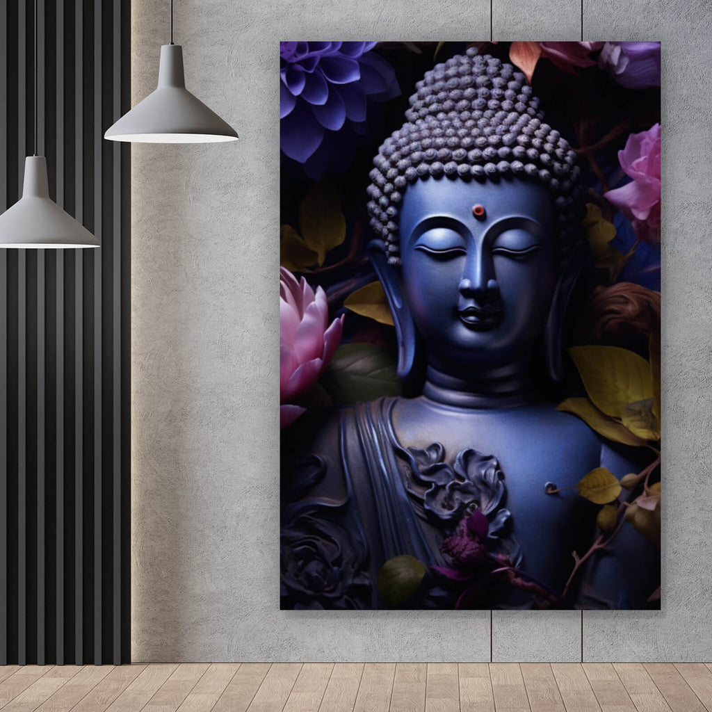 Dieses beeindruckende Wandbild zeigt ein Buddha-Kunstwerk, das von einer üppigen Blumenpracht umgeben ist und eine Atmosphäre von Ruhe und Harmonie ausstrahlt. Die sorgfältig gestalteten Details des Buddha-Motivs verleihen dem Bild eine spirituelle Tiefe, die ideal für Räume ist, die nach Entspannung und Meditation streben. Die Verwendung von floralen Elementen in Kombination mit dem Buddha schafft eine einzigartige Symbiose zwischen Natur und Spiritualität, die den Betrachter in eine Welt des inneren Friedens entführt. Das Bild eignet sich perfekt für moderne Wohnräume oder Büros, in denen eine beruhigende und inspirierende Umgebung gewünscht wird. Die harmonische Anordnung der Formen und der stilvolle Ausdruck des Motivs machen dieses Wandbild zu einem wahren Blickfang, der sowohl Ästhetik als auch Funktionalität vereint. Es fördert die positive Energie im Raum und trägt zu einem ausgeglichenen Ambiente bei, das sich ideal für die Schaffung eines persönlichen Rückzugsortes eignet. Durch die moderne Interpretation traditioneller spiritueller Symbole wird dieses Kunstwerk zu einem zeitlosen Stück, das sowohl Kunstliebhaber als auch Anhänger von Feng Shui anspricht.