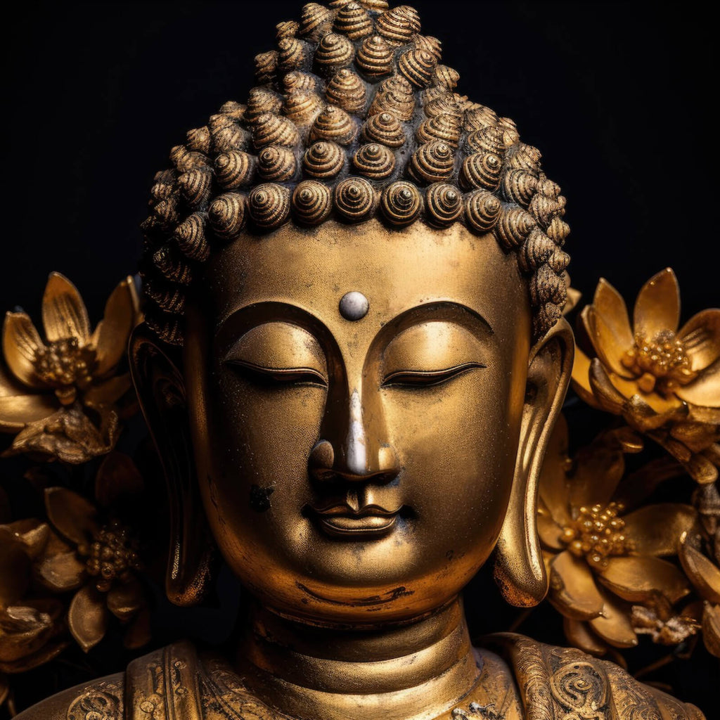 - Motivname: Edle Buddha Statue mit floralen Details