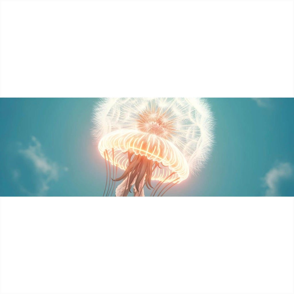 Dieses Wandbild zeigt eine futuristische und beeindruckende Darstellung einer leuchtenden Qualle, die scheinbar schwerelos im Wasser schwebt. Die kunstvolle Komposition vereint Elemente der Abstraktion und Moderne und strahlt eine beruhigende und zugleich inspirierende Atmosphäre aus. Die Qualle ist detailliert und mit einem faszinierenden Spiel von Licht und Schatten dargestellt, wodurch sie eine fast mystische Anmutung erhält. Ihre Tentakeln fließen sanft nach unten und erzeugen einen dynamischen Kontrast zur ruhigen Oberseite des Motivs. Die Darstellung wirkt fast dreidimensional, wodurch eine beeindruckende Tiefe entsteht, die das Bild lebendig macht. Dieses Werk eignet sich ideal für Räume, die ein Gefühl von Ruhe und Gelassenheit vermitteln sollen, wie Schlafzimmer oder Praxisräume. Gleichzeitig könnte es in modernen Büros oder Wohnzimmern als stilvoller Akzent dienen, der Kreativität und Innovation fördert. Durch die harmonische Verbindung von Natur und Abstraktion ist dieses Kunstwerk nicht nur ein Blickfang, sondern auch eine Einladung zur Meditation und zum Träumen. Die hochwertige Ausführung und das zeitlose Design machen es zu einer wertvollen Ergänzung jeder Wand.