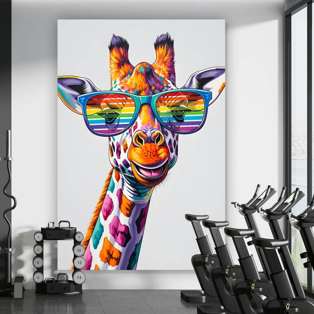 Dieses beeindruckende Wandbild zeigt eine stilvolle Giraffe, die eine auffällige Sonnenbrille trägt, und verkörpert modernen Humor und kreative Kunst. Der Einsatz von Pop Art Elementen verleiht dem Bild eine einzigartige und lebendige Ausstrahlung, die jeden Raum aufwertet. Die Giraffe als Motiv bringt eine fröhliche und unerwartete Note in die Raumgestaltung, während die moderne Sonnenbrille den Eindruck von Coolness und Stil verstärkt. Die dynamische Gestaltung und die kreative Darstellung ziehen sofort alle Blicke auf sich und machen das Bild zu einem idealen Mittelpunkt in jedem Wohnzimmer, Büro oder Kinderzimmer. Das Bild eignet sich perfekt für alle, die ihrer Einrichtung eine originelle und trendige Note verleihen möchten. Die harmonische Verbindung von Tiermotiven und moderner Kunst schafft eine einzigartige Atmosphäre, die sowohl entspannend als auch inspirierend wirkt. Die Kombination aus Humor und Stil macht dieses Kunstwerk zu einem hervorragenden Geschenk für Kunstliebhaber und alle, die sich gerne mit außergewöhnlichen Dekorationen umgeben. Die Vielseitigkeit und Ausdrucksstärke des Bildes sorgen dafür, dass es in verschiedenen Räumen und zu unterschiedlichen Anlässen hervorragend zur Geltung kommt.