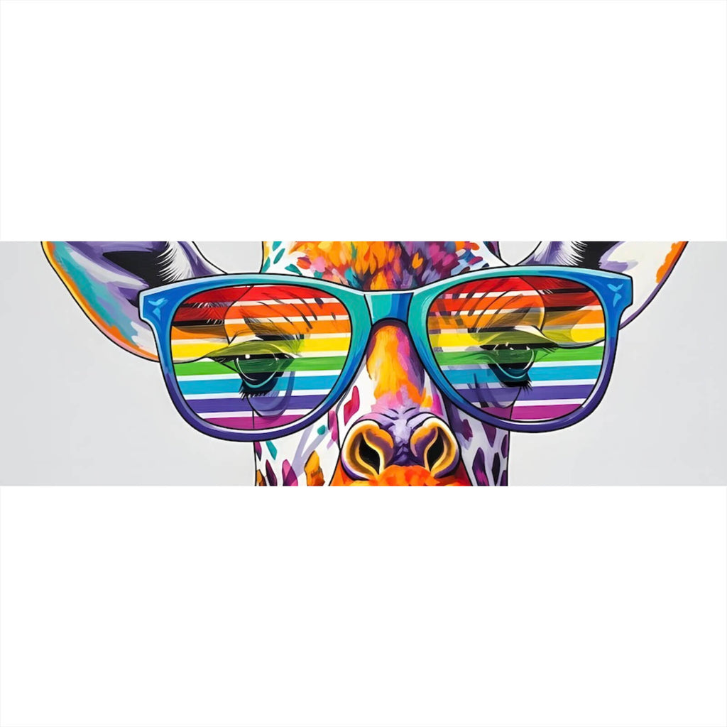 Dieses beeindruckende Wandbild zeigt eine stilvolle Giraffe, die eine auffällige Sonnenbrille trägt, und verkörpert modernen Humor und kreative Kunst. Der Einsatz von Pop Art Elementen verleiht dem Bild eine einzigartige und lebendige Ausstrahlung, die jeden Raum aufwertet. Die Giraffe als Motiv bringt eine fröhliche und unerwartete Note in die Raumgestaltung, während die moderne Sonnenbrille den Eindruck von Coolness und Stil verstärkt. Die dynamische Gestaltung und die kreative Darstellung ziehen sofort alle Blicke auf sich und machen das Bild zu einem idealen Mittelpunkt in jedem Wohnzimmer, Büro oder Kinderzimmer. Das Bild eignet sich perfekt für alle, die ihrer Einrichtung eine originelle und trendige Note verleihen möchten. Die harmonische Verbindung von Tiermotiven und moderner Kunst schafft eine einzigartige Atmosphäre, die sowohl entspannend als auch inspirierend wirkt. Die Kombination aus Humor und Stil macht dieses Kunstwerk zu einem hervorragenden Geschenk für Kunstliebhaber und alle, die sich gerne mit außergewöhnlichen Dekorationen umgeben. Die Vielseitigkeit und Ausdrucksstärke des Bildes sorgen dafür, dass es in verschiedenen Räumen und zu unterschiedlichen Anlässen hervorragend zur Geltung kommt.
