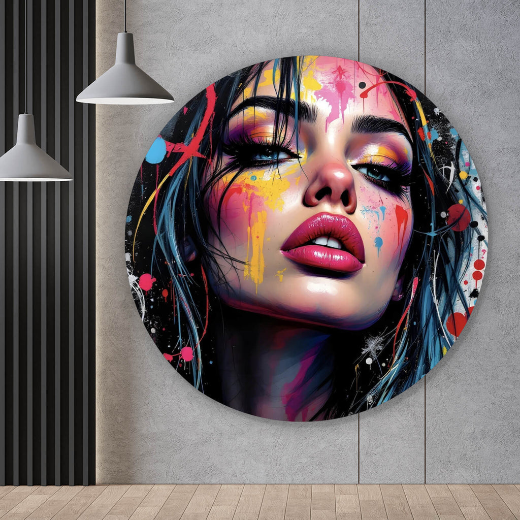 Auf der Suche nach einem ausgefallenen Wandbild als Aluminiumbild? Das Motiv Buntes Frauenporträt als Kreis gefällt dir und du hast nach Wandbildern mit den Wörtern Frau, Porträt, Gesicht, Graffiti, Ausdruck, Kreativ, Inspiration, Blick und Pop Art gesucht? Dann ist dieses Aluminiumbild in der Farbe Bunt genau das richtige Wandbild und Dekorelement für dich! Setze ein Highlight an deiner Wand! Das Aluminiumbild Buntes Frauenporträt ist in 5 verschiedenen Größen verfügbar, von klein und dezent bis hin zum XXL Aluminiumbild.
