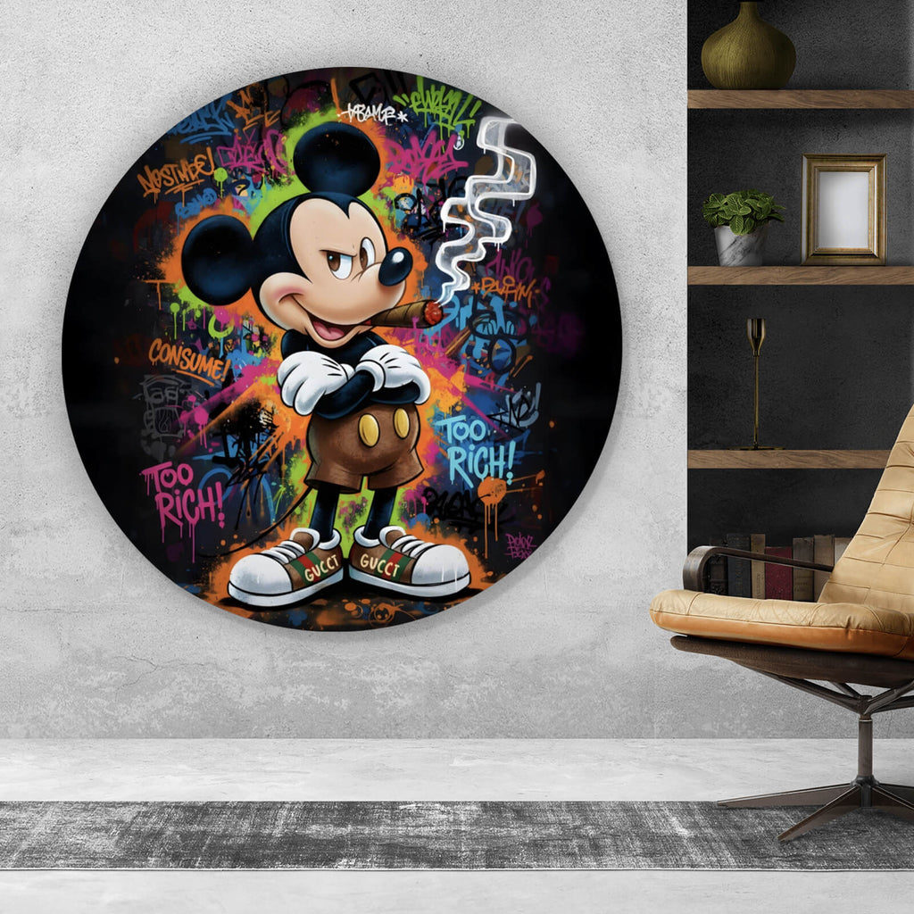 • Lade das Bild in den Galerie-Viewer, Aluminiumbild Rauchende Maus auf Graffitiwand Kreis