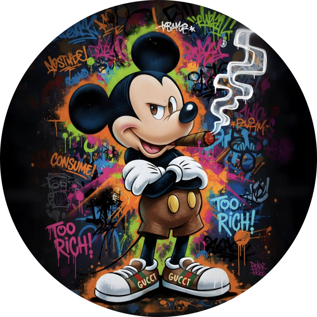Auf der Suche nach einem ausgefallenen Wandbild als Aluminiumbild? Das Motiv Rauchende Maus auf Graffitiwand als Kreis gefällt dir und du hast nach Wandbildern mit den Wörtern Maus, Zeichentrick, Graffiti, Rauch, Charakter, Zigarette, Szene, Streetart, Statement und Pop Art gesucht? Dann ist dieses Aluminiumbild in der Farbe Bunt genau das richtige Wandbild und Dekorelement für dich! Setze ein Highlight an deiner Wand! Das Aluminiumbild Rauchende Maus auf Graffitiwand ist in 5 verschiedenen Größen verfügbar, von klein und dezent bis hin zum XXL Aluminiumbild.