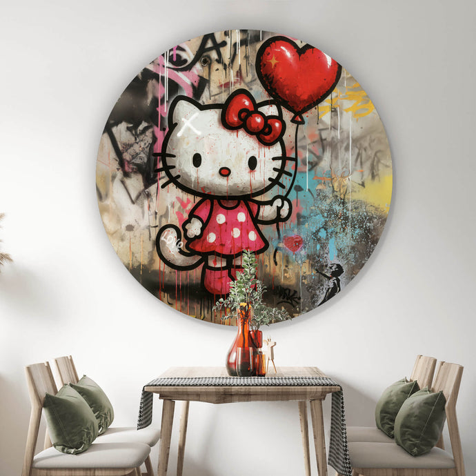 Aluminiumbild Ikonisches Katzenmädchen mit roter Schleife Graffiti Kreis
