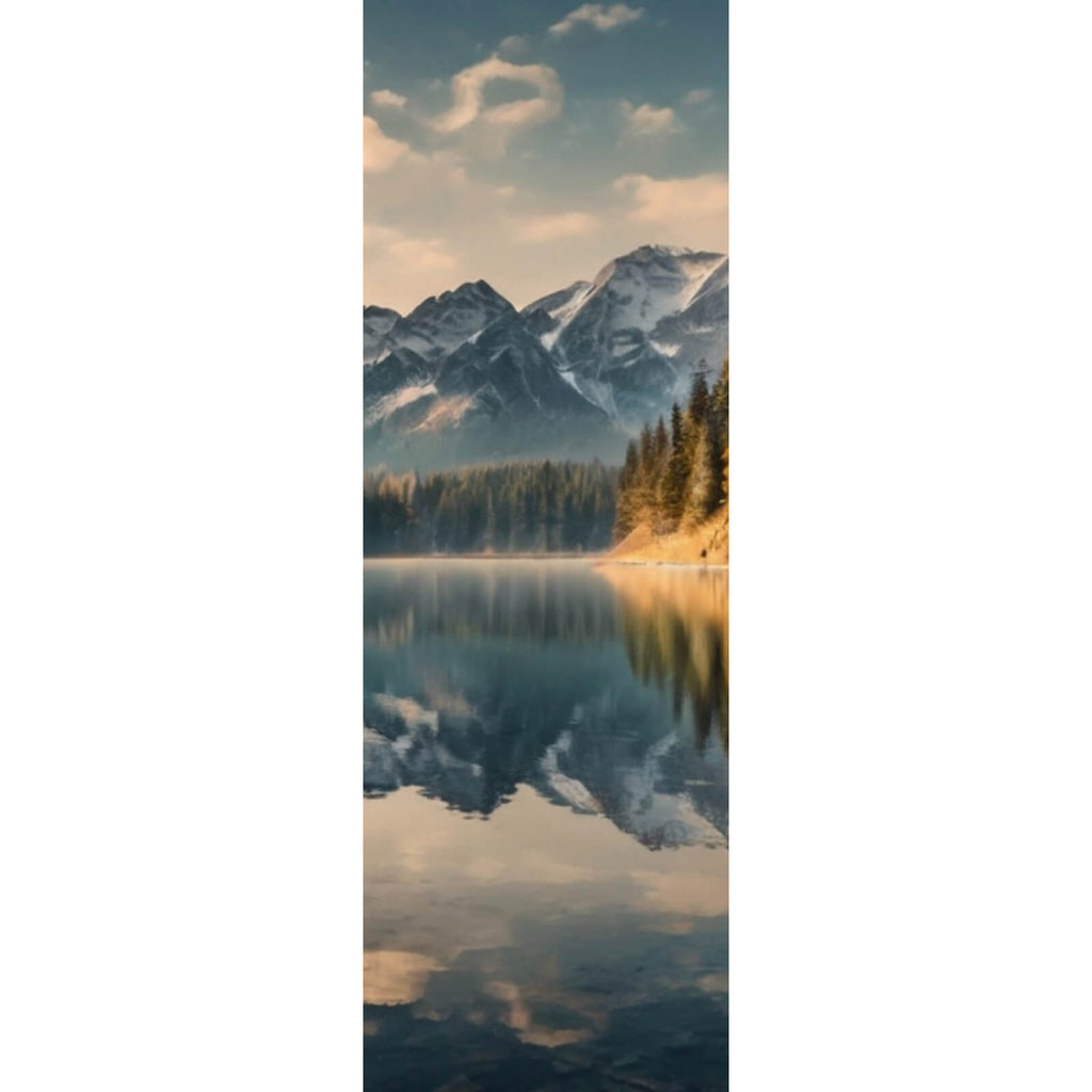 Dieses beeindruckende Wandbild zeigt eine atemberaubende Berglandschaft, die durch ihre majestätische Präsenz besticht. Der ruhige See im Vordergrund spiegelt die hoch aufragenden Berge wider, was dem Bild eine beeindruckende Tiefe und Ruhe verleiht. Die klaren Linien der Berggipfel und die harmonische Anordnung der Bäume am Ufer schaffen eine perfekte Symmetrie, die das Auge des Betrachters fesselt. Diese Landschaftsaufnahme fängt die Essenz unberührter Natur ein und verleiht jedem Raum eine beruhigende Atmosphäre. Die realistische Darstellung der Natur vermittelt ein Gefühl von Gelassenheit und Erholung, ideal für die Dekoration von Wohnzimmern, Schlafzimmern oder Büroräumen. Die subtile Spiegelung im Wasser verstärkt die Wirkung des Bildes und macht es zu einem perfekten Kunstwerk für Liebhaber von Landschaftsfotografie. Die Bildkomposition ermöglicht es dem Betrachter, sich in die Szene hineinzuversetzen und die frische Luft der Berge förmlich zu spüren. Dieses Wandbild ist nicht nur ein dekoratives Element, sondern auch ein Ausdruck von Ruhe und Harmonie, der jedem Raum eine besondere Note verleiht.