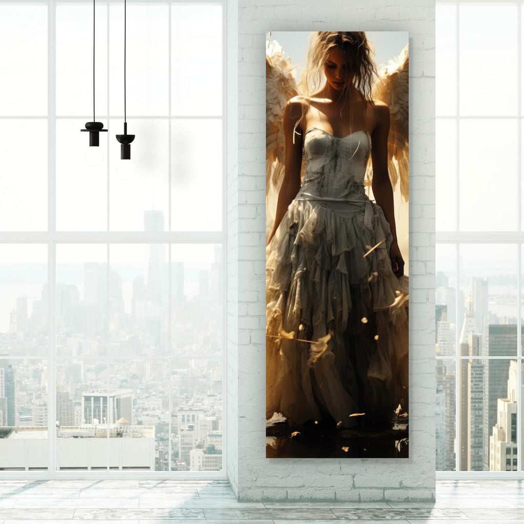• Lade das Bild in den Galerie-Viewer, Leinwandbild Engelsporträt in mystischer Atmosphäre Panorama Hoch