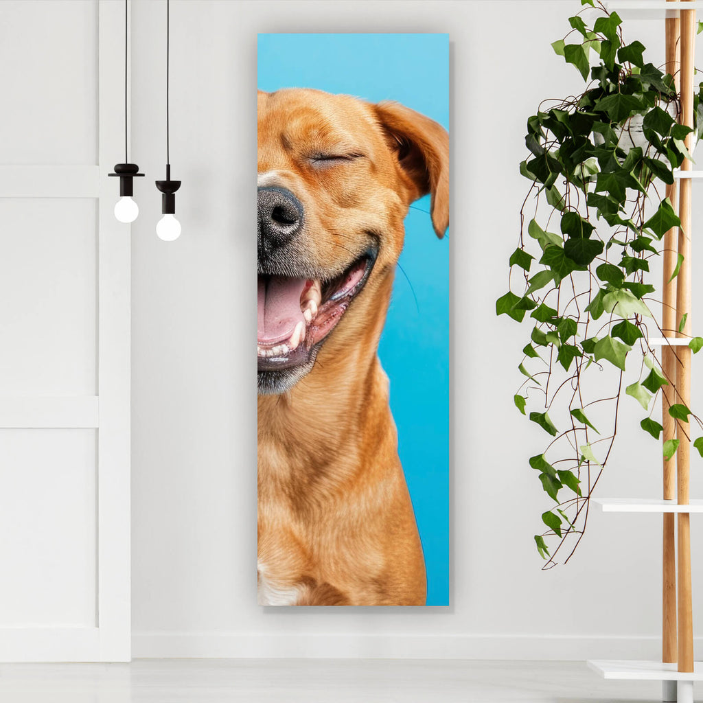 Auf der Suche nach einem ausgefallenen Wandbild als Leinwandbild? Das Motiv Lachende Tiere vor blauen Hintergrund im Panorama Hoch gefällt dir und du hast nach Wandbildern mit den Wörtern Katze, Hund, Tiere, Lachen, Freude, Haustiere und Ausdruck gesucht? Dann ist dieses Leinwandbild in der Farbe Bunt genau das richtige Wandbild und Dekorelement für dich! Setze ein Highlight an deiner Wand! Das Leinwandbild Lachende Tiere vor blauen Hintergrund ist in 3 verschiedenen Größen verfügbar, von klein und dezent bis hin zum XXL Leinwandbild.
