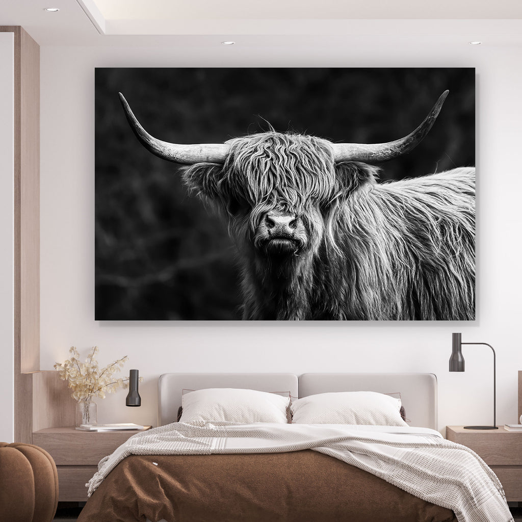 Auf der Suche nach einem ausgefallenen Wandbild als Leinwandbild? Das Motiv Highland Rind Schwarz-Weiß im Querformat gefällt dir und du hast nach Wandbildern mit den Wörtern Rind, Tiere, Highland, Kuh, Schottland, Hörner, Weide, Wiese, Natur, Hochland Rind, Skandinavisch, Hochlandrind, Highland Rind und Highlandrind gesucht? Dann ist dieses Leinwandbild in der Farbe Schwarz-Weiß genau das richtige Wandbild und Dekorelement für dich! Setze ein Highlight an deiner Wand! Das Leinwandbild Highland Rind Schwarz-Weiß ist in 5 verschiedenen Größen verfügbar, von klein und dezent bis hin zum XXL Leinwandbild.