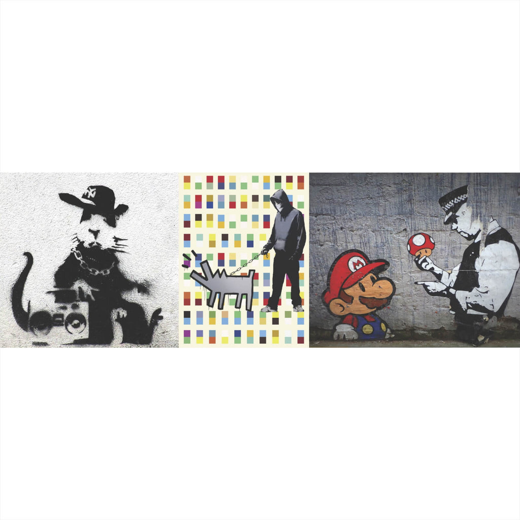 Auf der Suche nach einem ausgefallenen Wandbild als Aluminiumbild? Das Motiv Banksy - Charakter Collage im Panorama gefällt dir und du hast nach Wandbildern mit den Wörtern Banksy, Kunst, Streetart, Charakter, Collage, Style, Graffiti, Modern Art, Blume und Mario gesucht? Dann ist dieses Aluminiumbild in der Farbe Bunt genau das richtige Wandbild und Dekorelement für dich! Setze ein Highlight an deiner Wand! Das Aluminiumbild Banksy - Charakter Collage ist in 4 verschiedenen Größen verfügbar, von klein und dezent bis hin zum XXL Aluminiumbild.