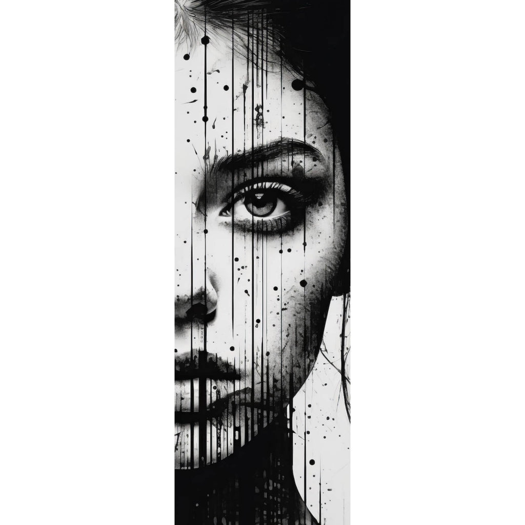 Dieses Wandbild präsentiert ein modernes, abstraktes Porträt, das durch seine ausdrucksstarken Linien und Tropfen besticht. Die Darstellung eines Gesichts wird durch eine kreative Kombination von Formen und Tropfen zum Leben erweckt, die eine dynamische und zugleich mystische Atmosphäre erzeugen. Die kunstvolle Anordnung der Elemente verleiht dem Bild eine tiefe Ausdrucksstärke und eine faszinierende Wirkung, die jeden Raum aufwertet. Der Stil des Bildes ist zeitgenössisch und spricht Liebhaber moderner Kunst an, die Wert auf Ästhetik und Design legen. Die Komposition aus klaren Linien und spontanen Tropfen verleiht dem Porträt eine lebendige Dynamik, während die dezente Farbgebung für Eleganz sorgt. Als Wandbild ist es ideal für Wohnzimmer, Büros oder Schlafzimmer geeignet, wo es als stilvolles Dekorationselement fungiert und gleichzeitig inspirierend wirkt. Die künstlerische Umsetzung des Motivs schafft eine Verbindung zwischen traditioneller Porträtkunst und moderner Abstraktion, was dieses Kunstwerk zu einem einzigartigen Hingucker macht. Ob als zentrales Element einer Galerie oder als einzelner Blickfang, dieses Bild fügt sich nahtlos in unterschiedliche Einrichtungsstile ein und zieht bewundernde Blicke auf sich.