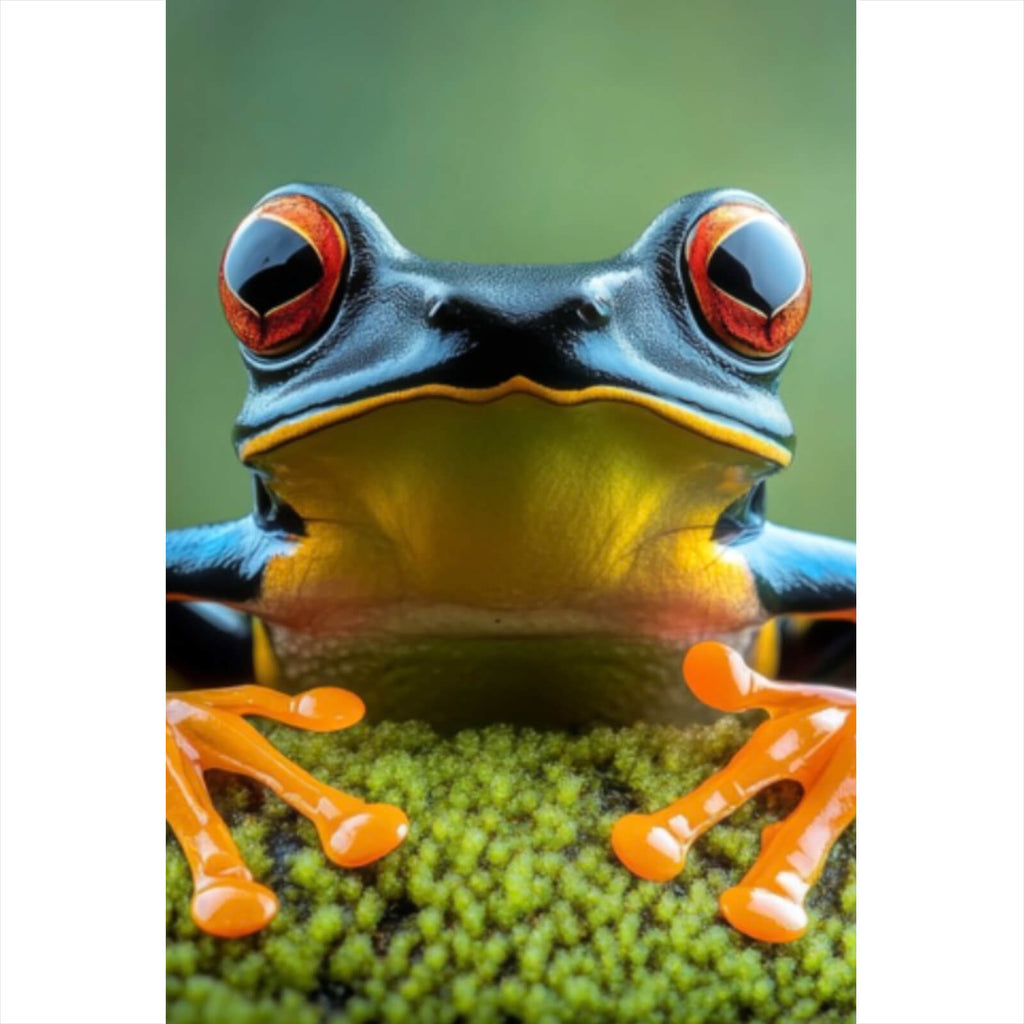 Dieses beeindruckende Wandbild zeigt einen lebendigen Frosch, der auf einem moosbedeckten Ast sitzt und mit seinem ausdrucksstarken Blick direkt den Betrachter ansieht. Die detailreiche Darstellung des Frosches fängt die faszinierende Struktur seiner Haut und die markanten Augen ein, was dem Bild eine besondere Tiefe und Lebendigkeit verleiht. Der künstlerische Stil dieses Motivs kombiniert realistische Details mit einer modernen Ästhetik, die sowohl in einem Wohnzimmer als auch in einem Büro oder Kinderzimmer eine inspirierende Wirkung entfaltet. Durch die Konzentration auf das zentrale Tiermotiv entsteht ein harmonisches Zusammenspiel von Formen und Texturen, das den natürlichen Charme der Tierwelt betont. Diese Wandkunst bietet eine stilvolle Möglichkeit, jedem Raum eine besondere Atmosphäre und ein Element der Natur zu verleihen. Die präzise Fotografie und der künstlerische Ausdruck machen dieses Bild zu einem Highlight jeder Raumgestaltung und bieten eine Einladung zum Staunen und Entdecken.