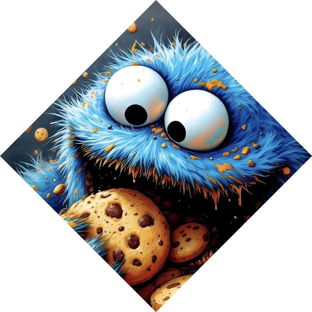 Dieses Wandbild zeigt eine lustige, cartoonhafte Figur, die mit großen Augen und einem riesigen Lächeln zahlreiche Kekse verschlingt. Die Szene ist voller Energie und Bewegung, da die Kekse regelrecht durch die Luft fliegen, was eine dynamische und lebhafte Atmosphäre erzeugt. Die Figur wirkt fröhlich und unbeschwert, was dem Bild eine humorvolle und verspielte Note verleiht. Der Stil des Bildes ist stark von Pop Art inspiriert, mit klaren Linien und einer ausdrucksstarken Darstellung. Die Materialanmutung vermittelt einen modernen, künstlerischen Eindruck, der perfekt in ein kreatives Ambiente passt. Durch die Fülle der Kekse und die lebendige Mimik der Figur entsteht eine gewisse Tiefe, die das Bild besonders interessant macht. Ideal für Räume, in denen eine fröhliche und lockere Stimmung gewünscht ist, wie Kinderzimmer oder Küchen. Es zieht sofort die Aufmerksamkeit auf sich und sorgt für Unterhaltung und Gesprächsstoff. Die Kombination aus Humor und Kunst macht dieses Wandbild zu einem einzigartigen Dekorationsstück, das sowohl Kinder als auch Erwachsene anspricht. Die Raumwirkung ist einladend und charmant, perfekt, um jedem Raum eine besondere Note zu verleihen.