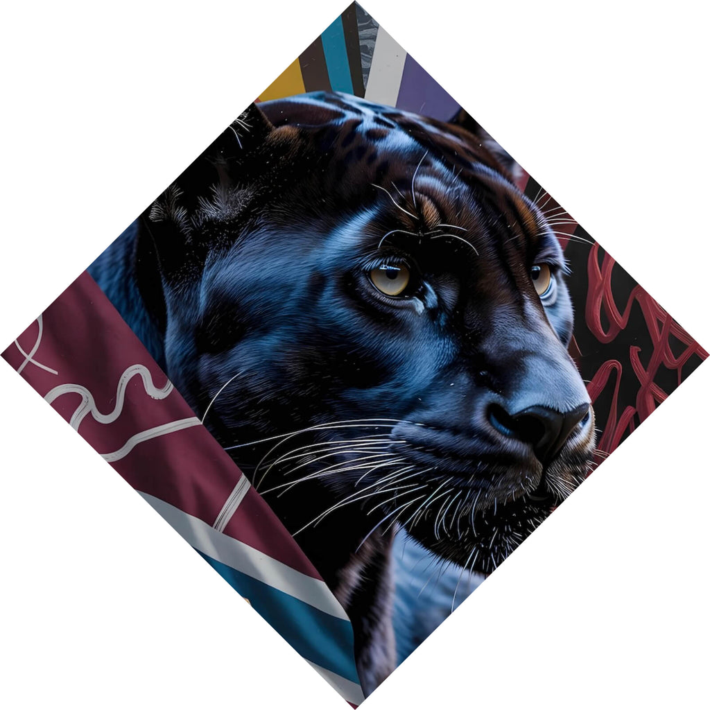 Dieses beeindruckende Wandbild kombiniert die majestätische Erscheinung eines Panthers mit der filigranen Darstellung von Fischen, eingebettet in ein modernes und abstraktes Kunstwerk. Der Panther, mit seinem intensiven Blick und den feinen Details seines Fells, strahlt Stärke und Eleganz aus. Die Fische, die scheinbar schwerelos im Raum schweben, verleihen dem Bild eine lebendige Dynamik und verstärken das Gefühl von Freiheit und Bewegung. Die geometrischen und abstrakten Elemente im Hintergrund fügen sich harmonisch in das Gesamtbild ein und bieten eine kontrastreiche Kulisse, die das zentrale Motiv hervorhebt. Die Komposition spielt geschickt mit der Anordnung der verschiedenen Elemente und schafft so eine faszinierende Tiefe und Dimension. Diese künstlerische Darstellung eignet sich hervorragend als Dekoration für moderne Wohnräume und verleiht jedem Raum eine einzigartige Atmosphäre. Das Kunstwerk inspiriert und regt die Fantasie an, während es gleichzeitig als stilvolles und ausdrucksstarkes Designelement dient. Es spricht Liebhaber von Natur und abstrakter Kunst gleichermaßen an und bietet eine perfekte Verbindung von Kraft und Anmut.