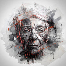 • Lade das Bild in den Galerie-Viewer, Aluminiumbild Ausdrucksstarkes Porträt einer älteren Frau künstlerisch gestaltet No.2 Quadrat