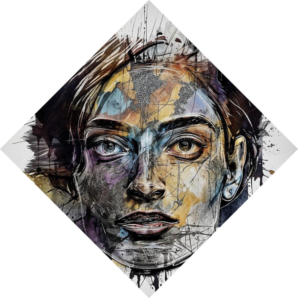 Auf der Suche nach einem ausgefallenen Wandbild als Aluminiumbild? Das Motiv Bunte Gesichtskunst Modern Art als Raute gefällt dir und du hast nach Wandbildern mit den Wörtern Gesicht, Frau, Modern Art, Abstrakt, Ausdruck, Kreativ, Stilvoll und Inspiration gesucht? Dann ist dieses Aluminiumbild in der Farbe Bunt genau das richtige Wandbild und Dekorelement für dich! Setze ein Highlight an deiner Wand! Das Aluminiumbild Bunte Gesichtskunst Modern Art ist in 4 verschiedenen Größen verfügbar, von klein und dezent bis hin zum XXL Aluminiumbild.